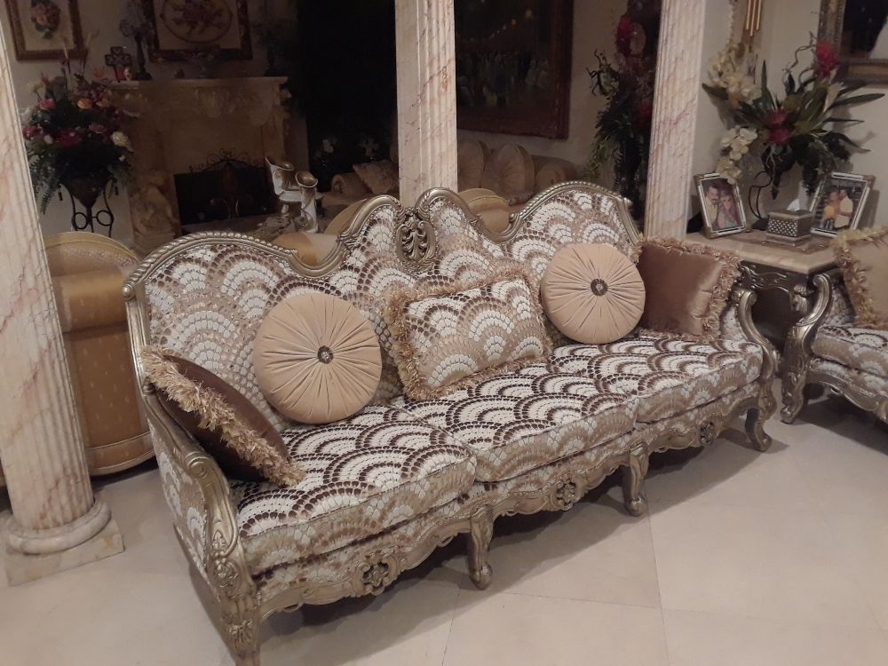 ButtonHigh quality attention to detail reupholstering of formal seating.