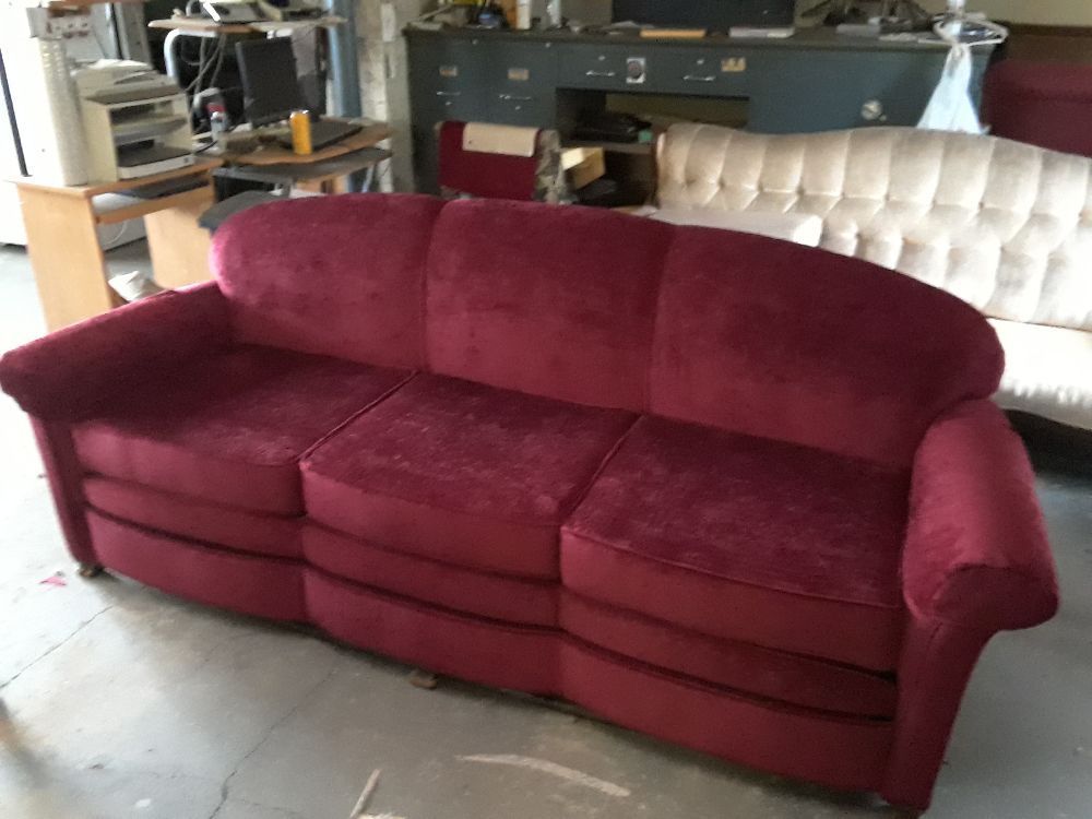 Ultrasuede Red Couch Reupholstered